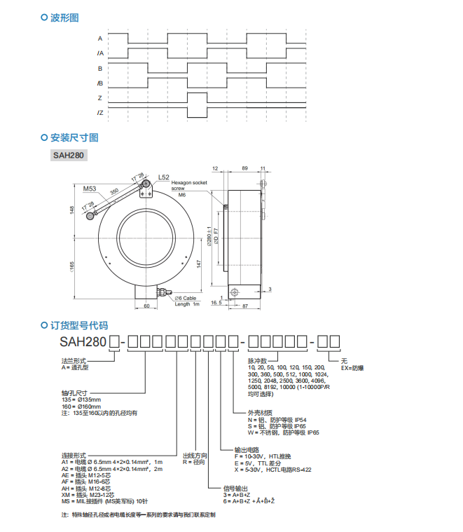 SAH280 超大孔径型增量编码器